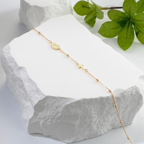 • [FAITH MEETS FASHION] Crafted with a delicate O-link chain and evenly spaced gold beads, this ankle bracelets for women combines a sleek cross and a detailed Jesus medallion. Together, these elements on the 14k gold anklets for women transform religious symbols into a refined fashion statement