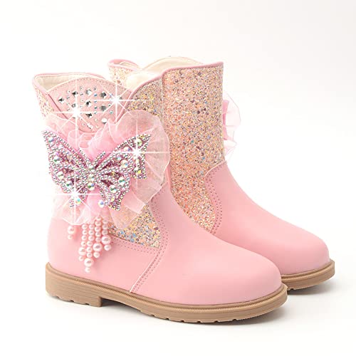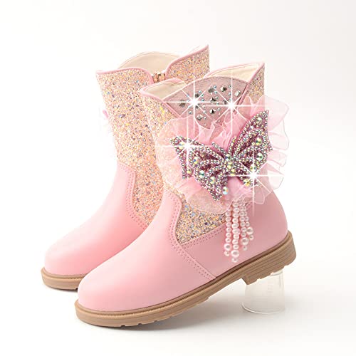 Girls Glitter Mid Calf Side Zipper Snow Boots Fashion Winter Warm Fur Lined Outdoor Shoes For Kids Toddler 5