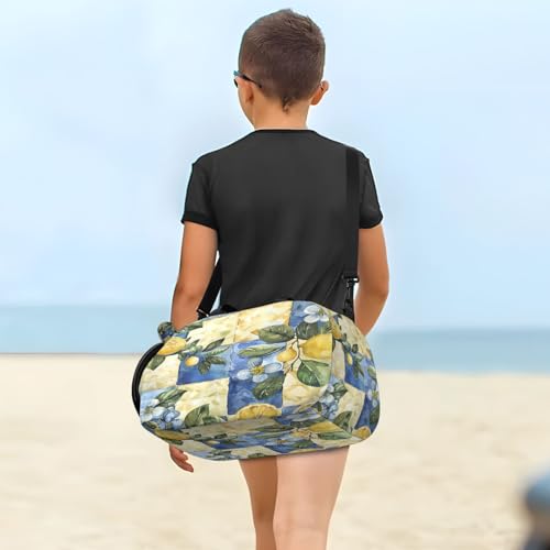 YETTASBIN Sport Travel Duffel Bag for Girls Boys, Lemon Plaid Large Waterproof Weekender Overnight Bag, Detachable Shoulder Strap Gym Bag with Shoe Compartment & Wet Pocket 7