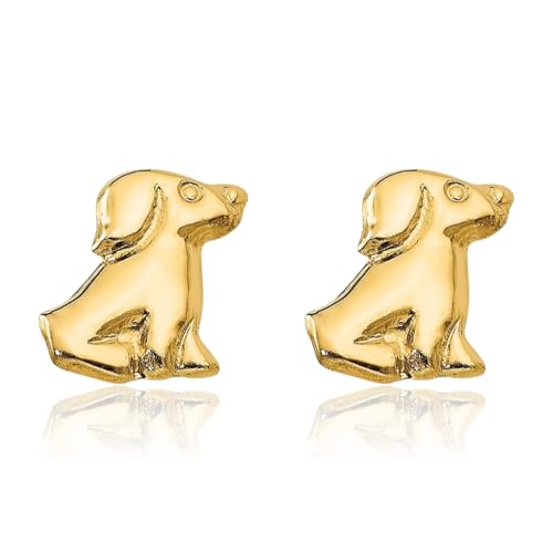 14K Solid Yellow Gold Dog Stud Earrings 1