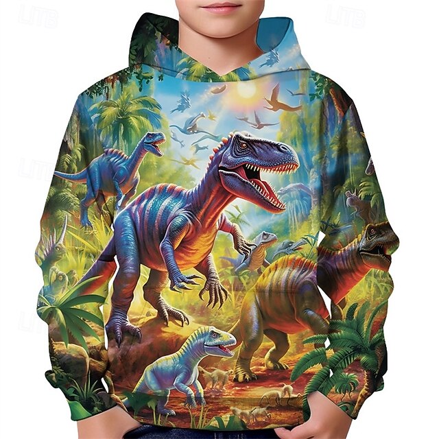 HOT ! Boys' 3D Dinosaur Hoodie Long Sleeve Spring Fall Fashion Streetwear Kids 4-12 Years Hooded Outdoor Casual Daily Regular Fit