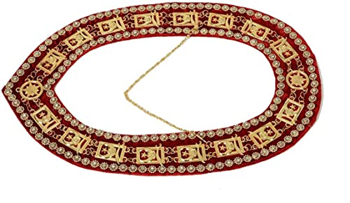 MASONIC SHRINER RHINESTONES Around Chain Collar Golden On Red Velvet premium Gold Quality, Gift For Mason/Freemason 1