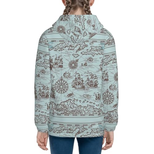 Pirate Adventure Map Kids Pullover Hoodies Boys Zip Up Sweatshirts Girls Athletic Clothes with Pocket 4