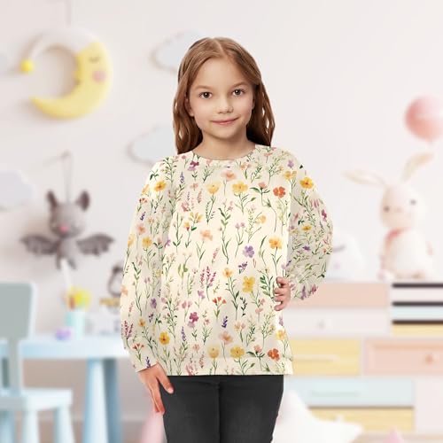 JUNZAN Summer Flowers Orchid Freesia Beige Little Girls Hoodie Sweatshirt Crewneck Kids Pullover Hoodie Sports 4T 6