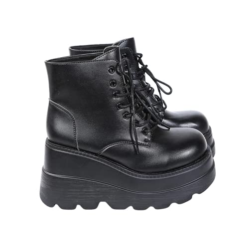 GUNIYIFS Womens Platform Boots Goth Combat Boots Punk Leather Gothic Boots for Women Mid Calf Ankle Booties Chunky Shoes 5