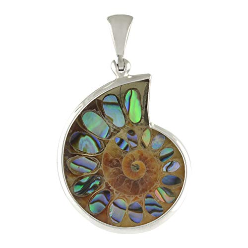 • This unique pendant features radiant Abalone shell meticulously inlaid by hand into the chambers of a genuine fossilized ammonite.