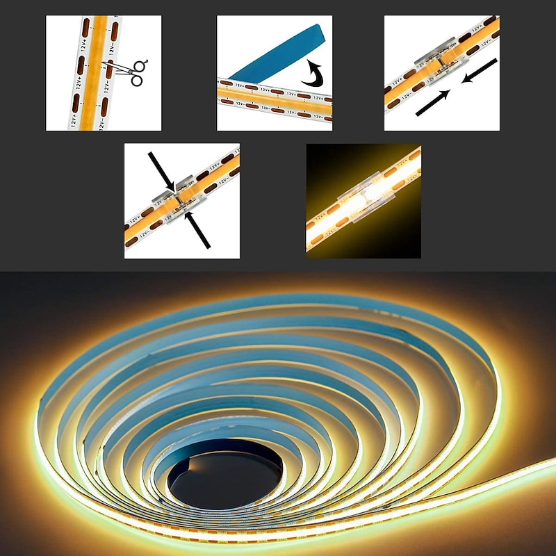 COB LED Light Strip Stepless Dimming16.4ft 5m,  LED Rope Light Bendable Band Light, CRI 80 60W Suitable for High-end Lighting DC12V DC24V 11