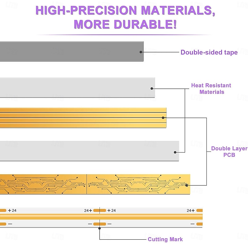 COB LED Light Strip Stepless Dimming16.4ft 5m,  LED Rope Light Bendable Band Light, CRI 80 60W Suitable for High-end Lighting DC12V DC24V 8