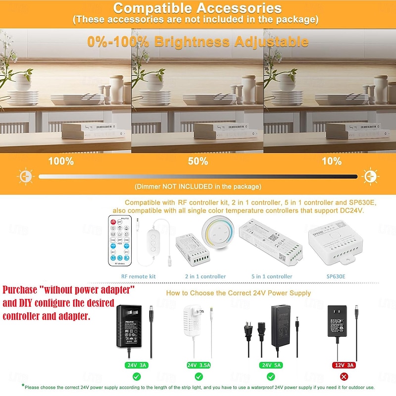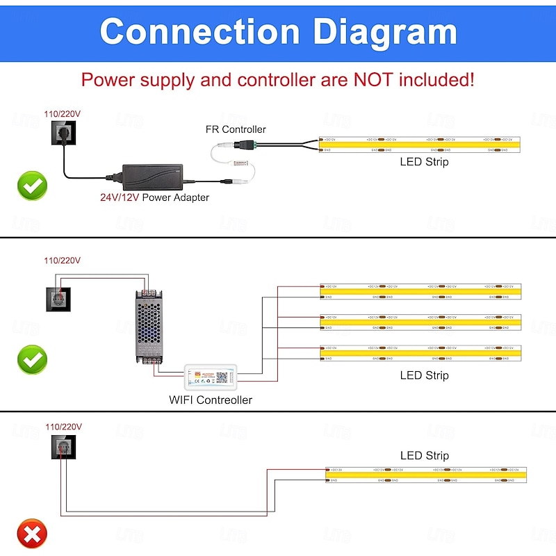 Highlights - Wide Range of Light Colors: Our SMD5050 LED strip lights offer a broad spectrum of colors including Red, Green, Blue, White, Orange, Pink, Purple, Yellow, and more. - Reliable Signal Reception: To ensure proper functioning of the LED strip lights, make sure the remote control is pointed directly at the receiver and kept within 3 meters of distance. - Efficient Wiring: The LED strip lights can only run up to 5 meters when wired in series. For longer distances, we recommend wiring the strips to the transformer in parallel, back to a single transformer. - Flexibility in Power Adapter: At our e-store, you get to choose from different power adapter options, including no power adapter. Make sure you carefully select the appropriate option to match your needs.