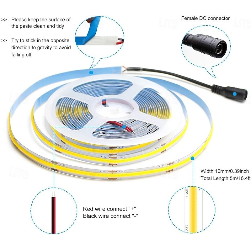 COB LED Light Strip Stepless Dimming16.4ft 5m,  LED Rope Light Bendable Band Light, CRI 80 60W Suitable for High-end Lighting DC12V DC24V 17