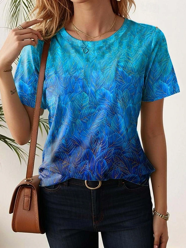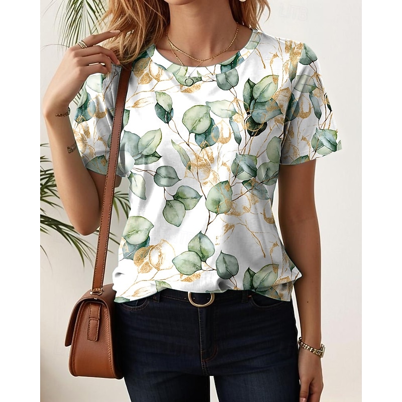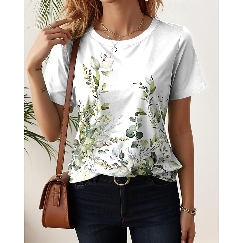 HOT ! Women's T Shirt Floral Casual Short Sleeve Round Neck Regular Tops Daily Print Black White Light Green Blue Purple Summer