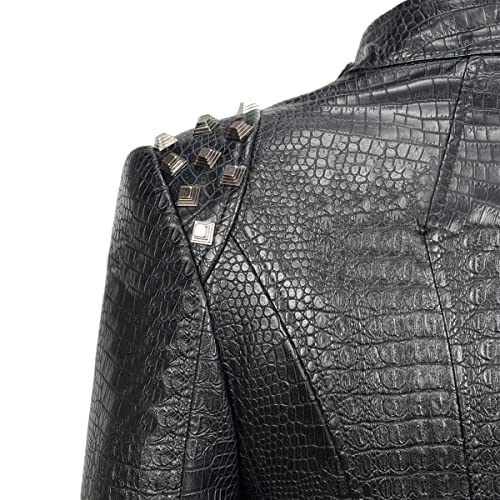 More information about Fashion SX Women's Punk Studded Faux-alligator Print Pattern PU Leather Jackets Zipper Moto Biker Coat