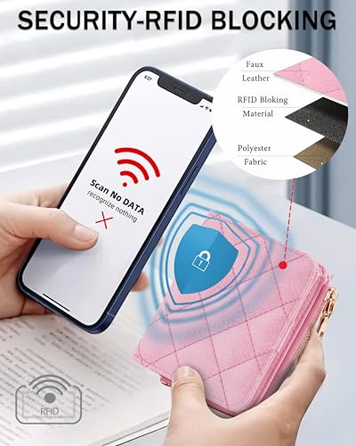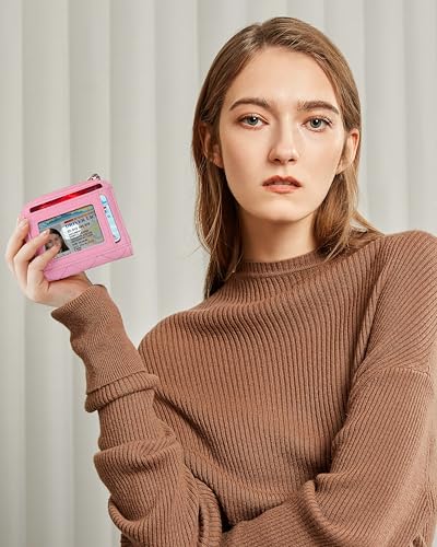 Small Wallets Woman RFID Bifold Wallet Women Slim Card Wallets for Women with Zipper Coin Pocket, 2 Id Windows (Pink) 7