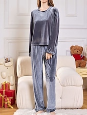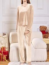 More information about Women's Pajama Set Casual Comfort Pure Color Elastic Waist T Shirt Pant Home Daily Long Sleeve Crew Neck Red Beige Gray Fall Winter