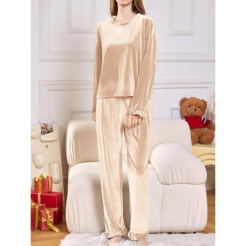 HOT ! Women's Pajama Set Casual Comfort Pure Color Elastic Waist T Shirt Pant Home Daily Long Sleeve Crew Neck Red Beige Gray Fall Winter