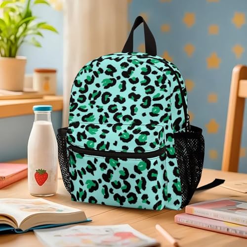 Green Leopard Skin Pattern 13 Inch Backpack Lightweight Double Shoulder Bag with Zippers Unisex Daypack 3