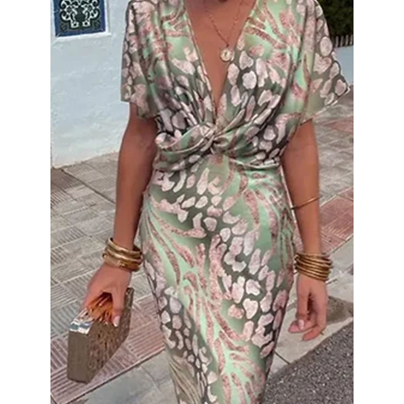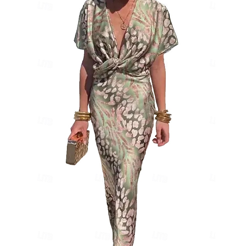 HOT ! Women's Maxi Dress Semi Formal Dress Wrap Dress Stylish Casual Semi Formal Formal Vacation Party Regular Fit Graphic Short Sleeve V Neck Light Green Summer Spring