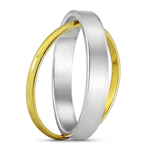 AeraVida Eternal Two Tone Interconnected Gold Plated .925 Sterling Silver Ring | Classic Wedding Rings For Women | Casual Comfort Fit Silver Rings for Women | Couple Unisex Rings | Sterling Silver Rings Sizes 6-9 5