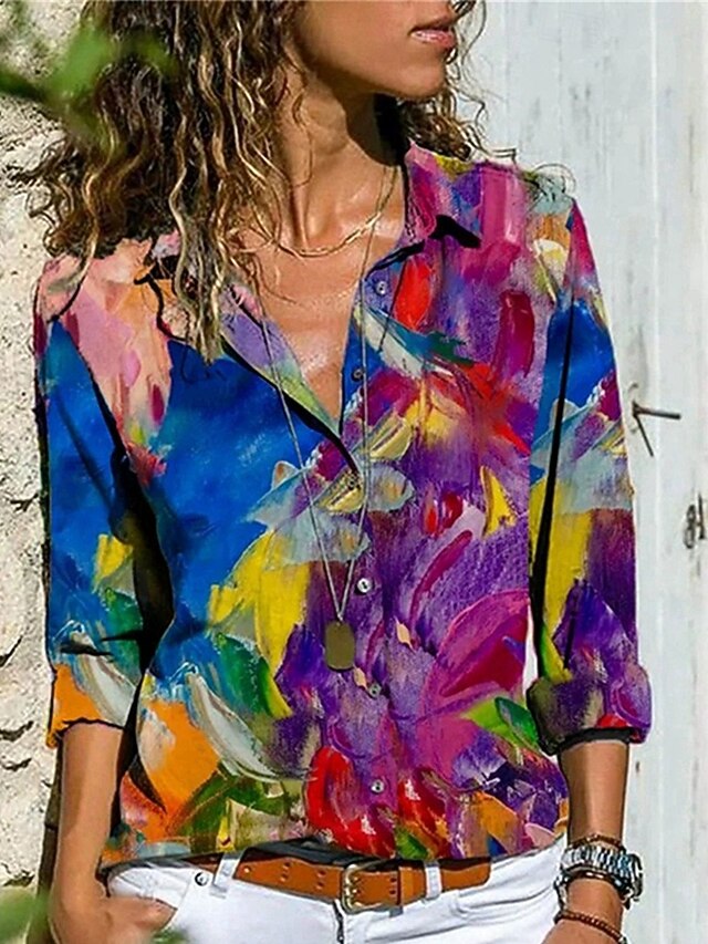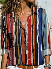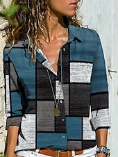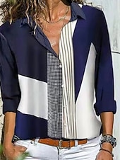 More information about Women's Shirt Blouse Color Block Modern Casual Long Sleeve Shirt Collar Regular Tops Daily Holiday Buttons White and Blue Black Red Royal Blue Sky Blue Summer