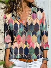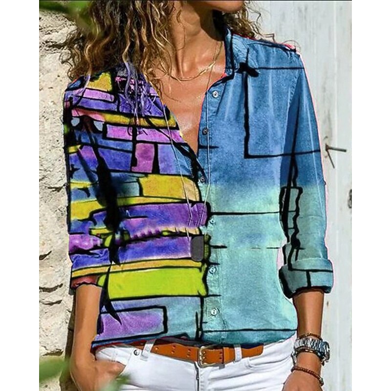 Highlights - Stay cool and stylish in this casual summer shirt designed for women - Crafted from lightweight polyester fabric, perfect for everyday wear - Features long sleeves and a trendy color block pattern - Complete with a chic shirt collar neckline and button details - Ideal for daily outings and occasions where you want to look effortlessly fashionable