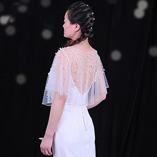 HOT ! Wedding Wraps Capes Soft Tulle Shawls With Pearl Beads Embroidery Bridesmaid Capelet Shrug For Party Evening Dress