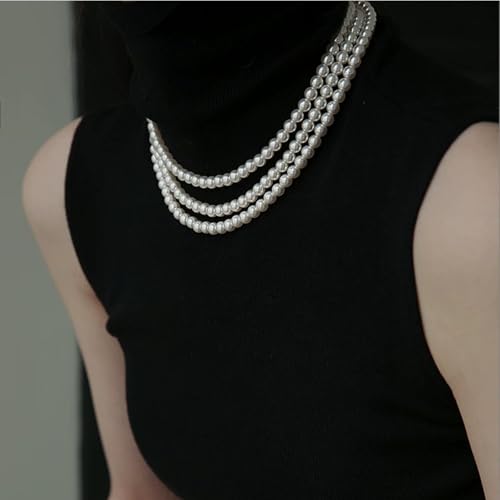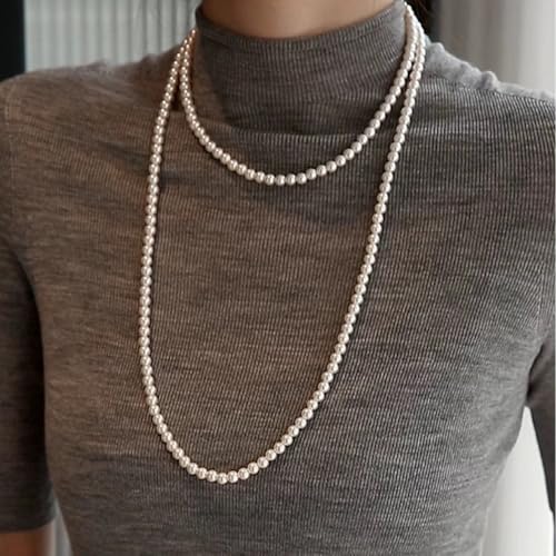 Long Pearl Necklaces for Women,Vintage Elegant Faux White Pearl Multi Strand Layered Beads Necklaces Charm Bridal Wedding Party Prom Choker Necklace 1920s Costume Jewelry 1