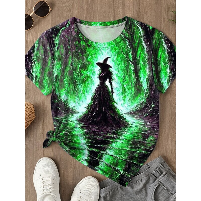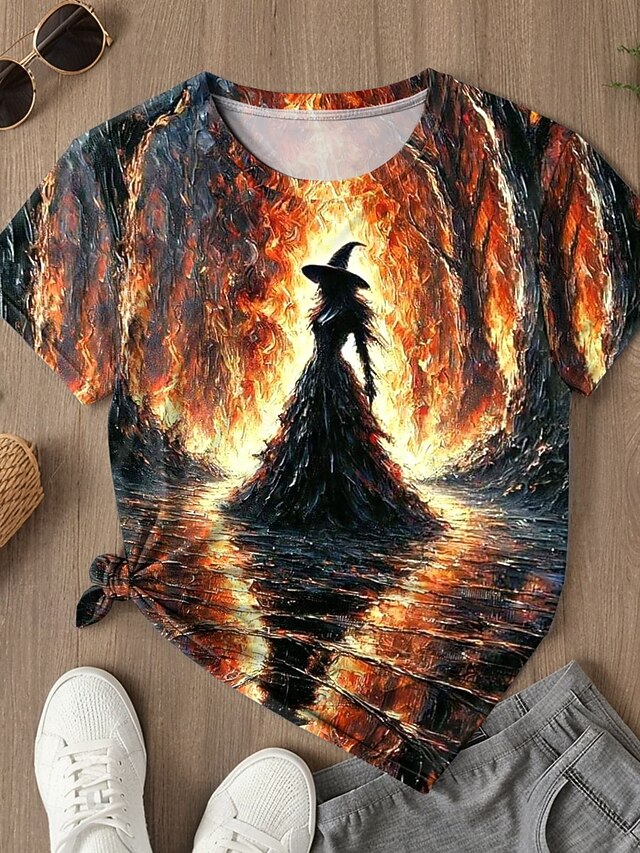 More information about Halloween Women's T shirt Witch Graphic Vintage Stylish Classic Short Sleeve Round Neck Regular Tops Daily Print Blue Purple Orange Green Summer Spring Fall