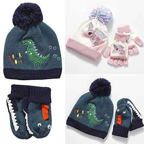 HOT ! Toddler Kids Novelty Knit Unicorn Beanie Hat & Gloves Warm Winter Set for Age 3-8 Years
