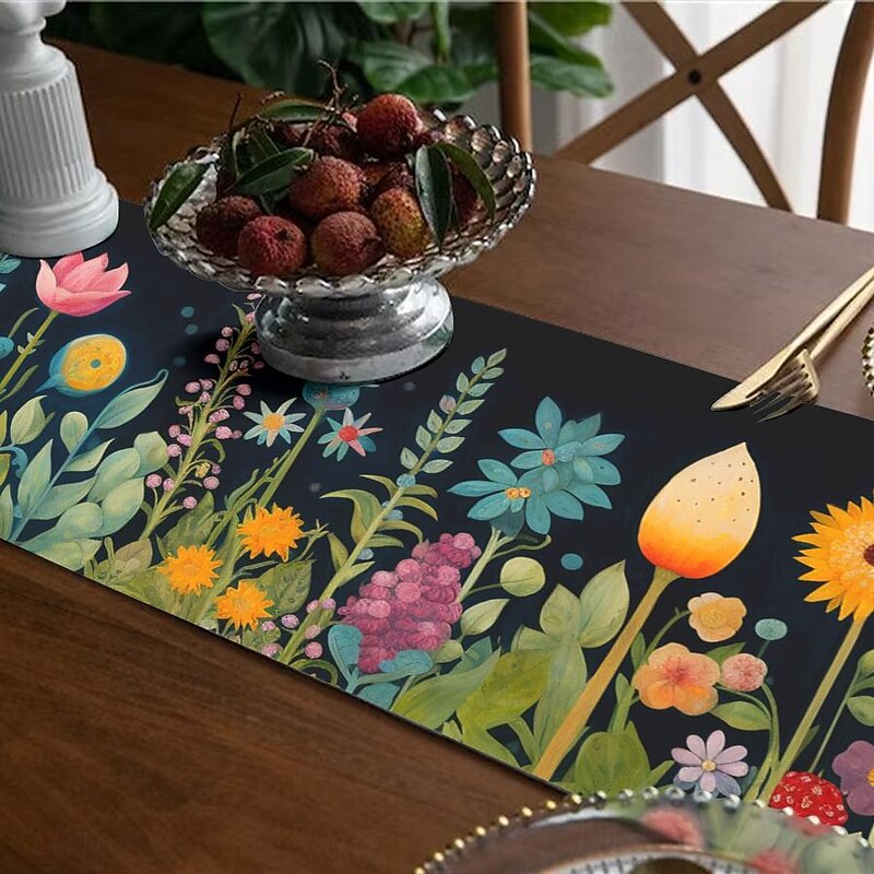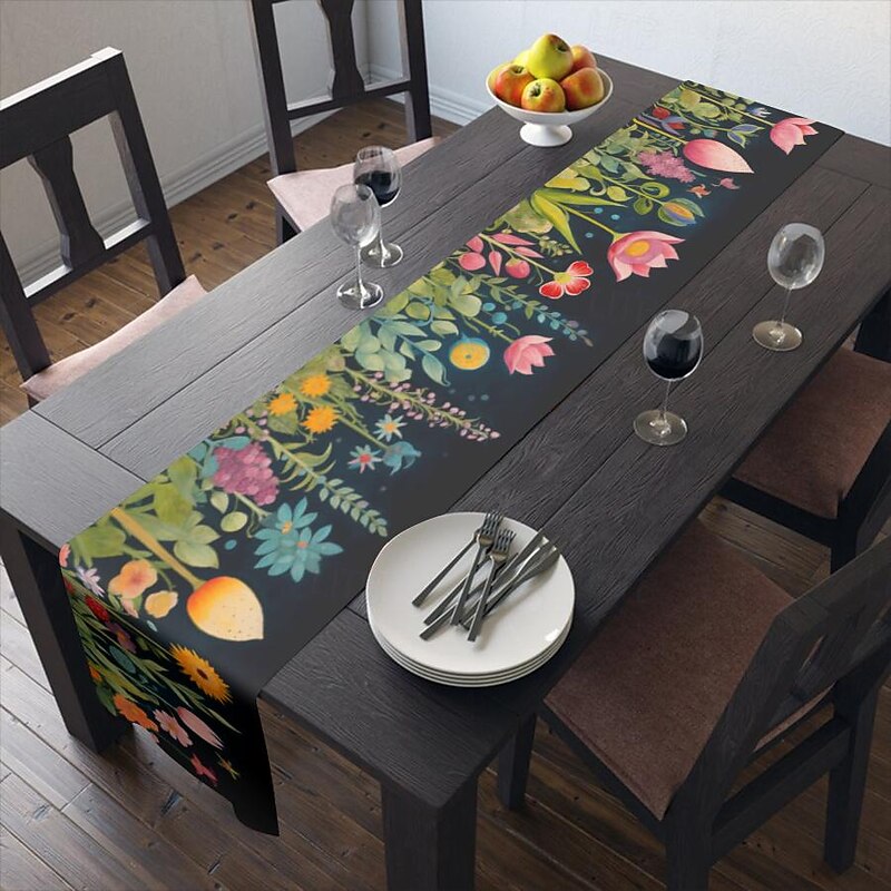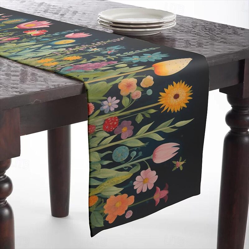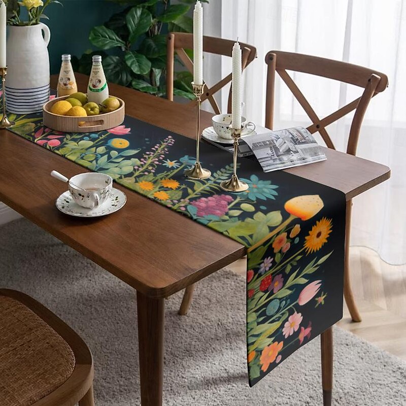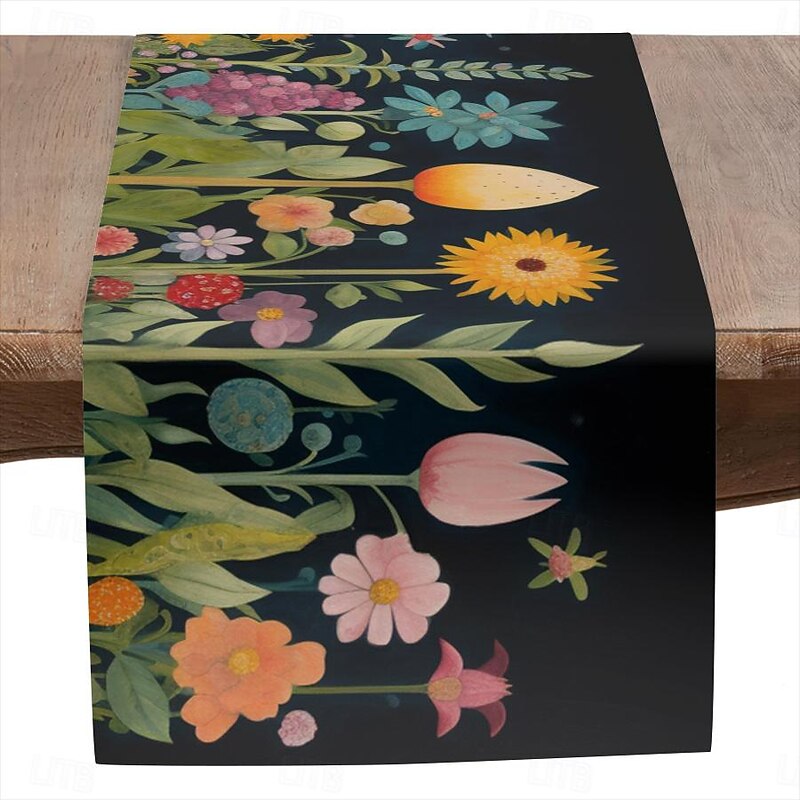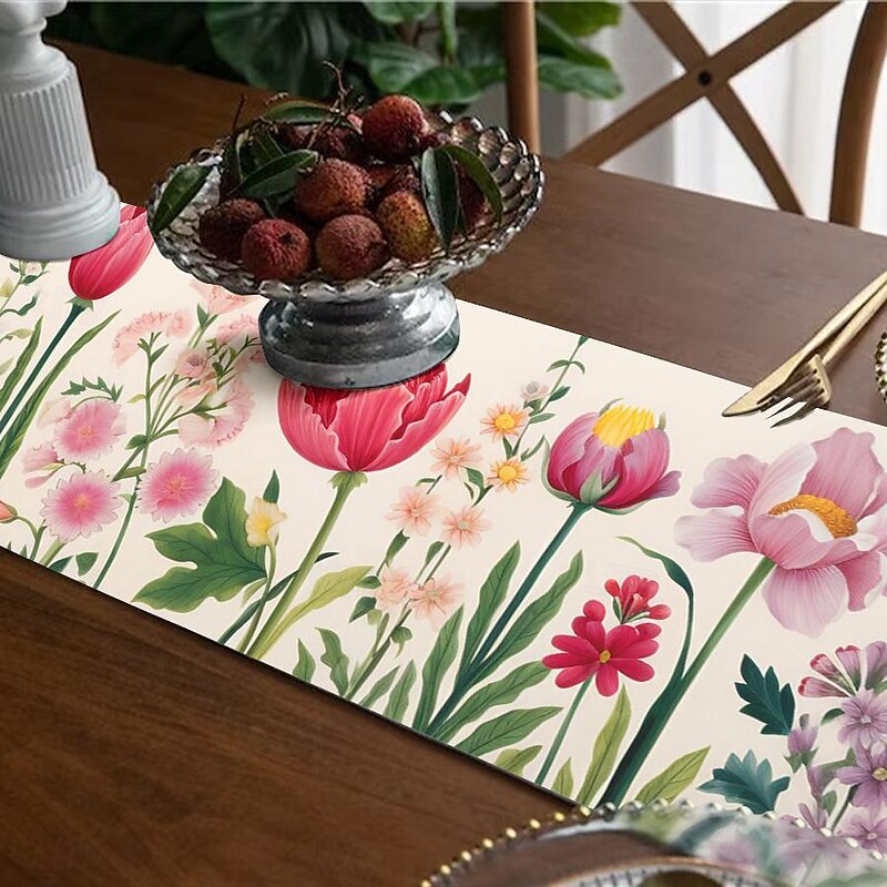 HOT ! Floral Print Table Runner, Kitchen Dining Table Decor, Print Decor Table Runners for Indoor Outdoor Home Farmhouse Holiday Wedding Birthday Party Decoration