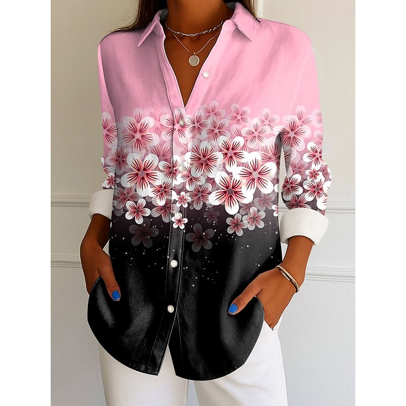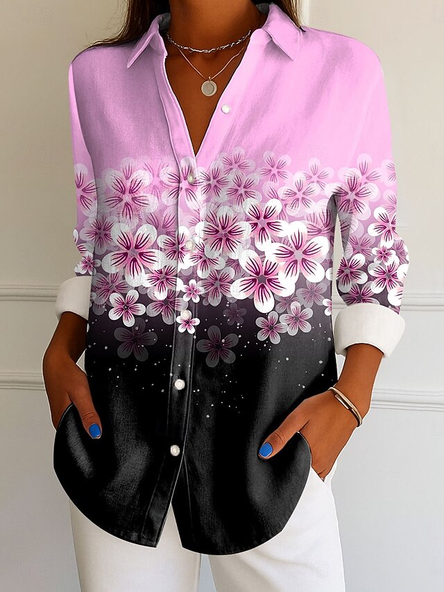 HOT ! Women's Shirt Button Down Tunic Shirt Collar Long Sleeve Ombre Floral Graphic Elegant Vintage Tropical Regular Tops Work Daily s Print Pink Blue Purple Green Spring