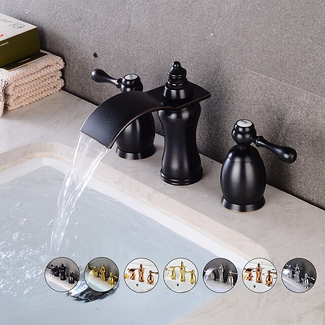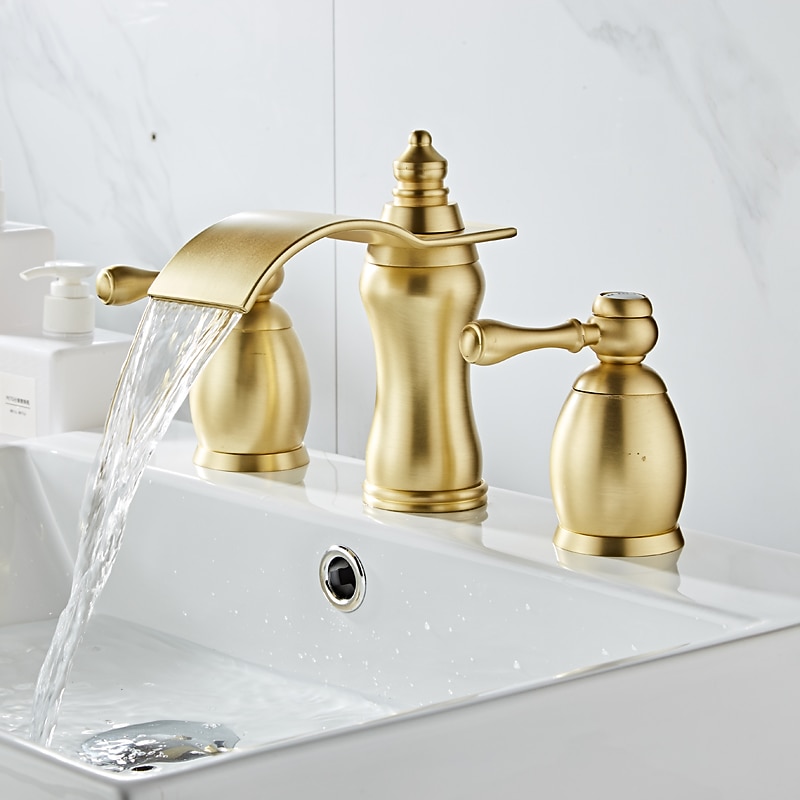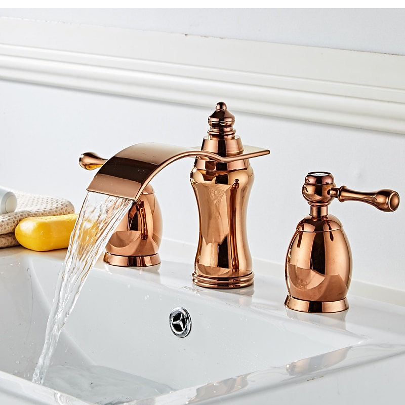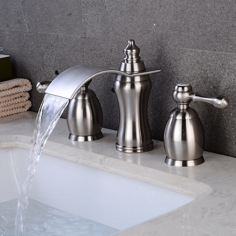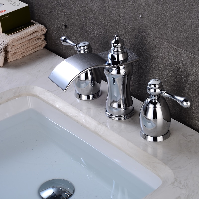 More information about Widespread Bathroom Sink Faucet,Two Handle Three Holes Waterfall Electroplated Bath Taps