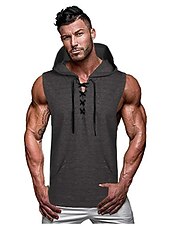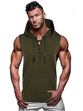 More information about Men's Tank Top Vest Top Undershirt Gym Muscle Tee Sleeveless Hooded Summer Plain Vintage Designer Muscle Drawstring Outdoor Going out Gym Green Gray Top Tee for Men