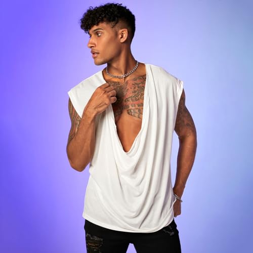More information about WDIRARA Men's Cowl Neck Draped Cap Sleeve Tank Top Summer Casual T Shirt Tops