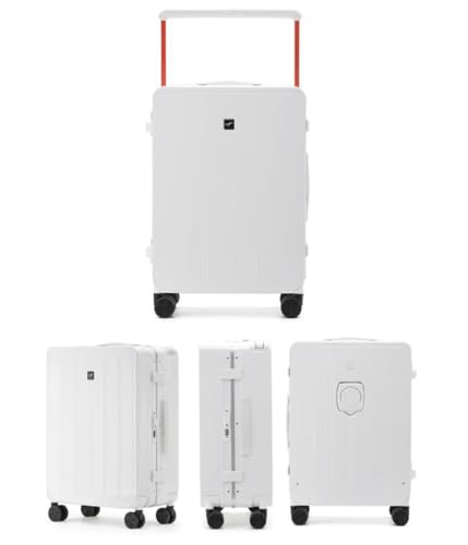 Aluminum Frame Suitcases Carry on Luggage Wide Pull Rod 24 Inch Suitcases TSA with Cup Holder, USB, 360 ° Universal Wheel,White,20in 1