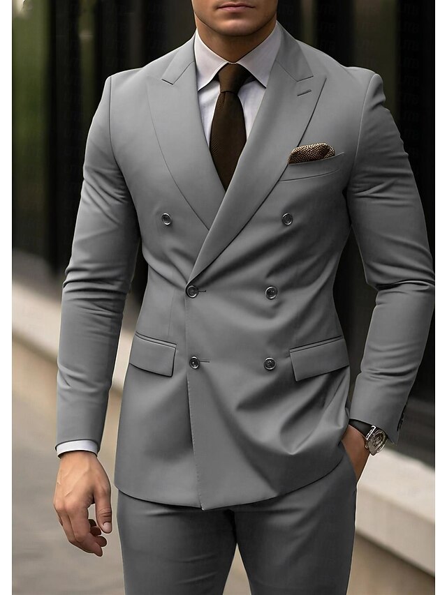 $112.99 - Men's Wedding Suits Peak Light Grey Dark Blue Business Formal Solid Colored Tailored Fit 2 Piece Double Breasted Six-buttons 2025. Shop for cheap Formal Suits online? Buy at lightinthebox.com on sale today!