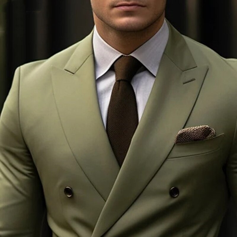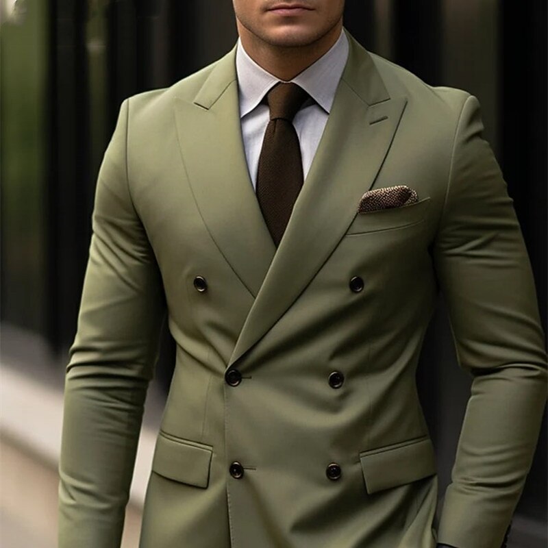 Men's Wedding Suits Peak Light Grey Dark Blue Business Formal Solid Colored Tailored Fit 2 Piece Double Breasted Six-buttons 10