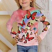 Girls' 3D Graphic Butterfly T shirt Tee Long Sleeve Spring Fall Fashion Basic Kids 4-12 Years Crew Neck Outdoor Casual Daily Regular Fit 3