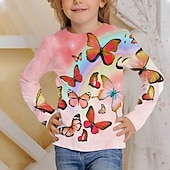 HOT ! Girls' 3D Graphic Butterfly T shirt Tee Long Sleeve Spring Fall Fashion Basic Kids 4-12 Years Crew Neck Outdoor Casual Daily Regular Fit