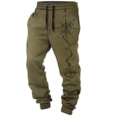 More information about Men's Compass Sweatpants Joggers Pants Trousers Mid Waist Drawstring Elastic Waist Vintage Casual Outdoor Dailywear Pocket Spring Fall Winter 3D Print Black White Blue