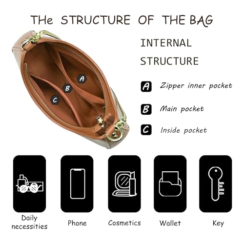 • [Reasonable Internal Structure Design]: The internal structure of crossbody bags for women is redesigned - 1x main pocket; 1x inside pocket and 1x zipper inner pocket -It has sufficient capacity to hold daily necessities such as mobile phones, cosmetics, etc.