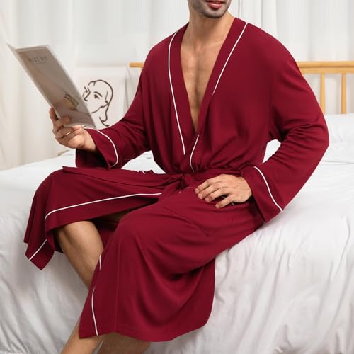 HOT ! Mens Lightweight Robe Cotton Blend Kimono Bathrobe with Pockets, Soft Breathable Absorbent Loungewear for Home