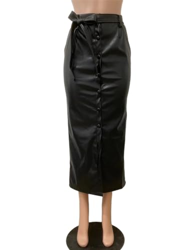 • DESIGN: High Waisted, Button Down, Front Slit, Maxi Long Skirt, Pencil Skirt with Belt, Leather Skirts for Women.