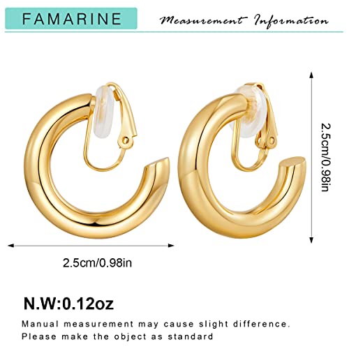 HOT ! FAMARINE Clip on Earrings for Women, Chunky Chunky Tube Hoop Clip Earrings No Piercing Earrings