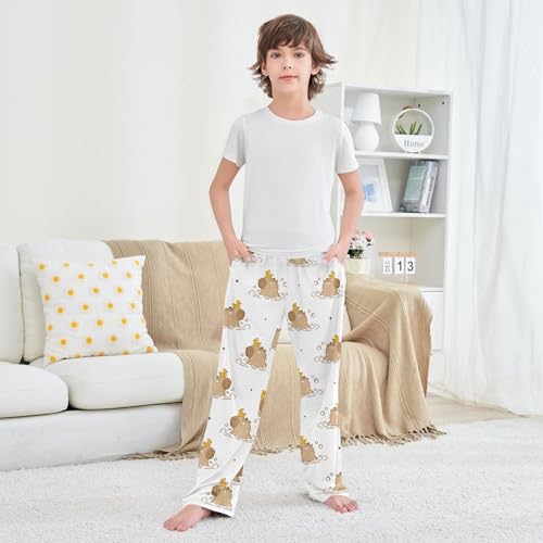 HOT ! Boys' Pants Cartoon Capybaras Swimming Duck Long Bottoms Jogger Pants Elastic Waist Trousers with Pockets S-XL