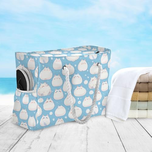 JUNZAN Cute Cats Beach Tote Bag with Handles Swim Pool Bag Beach Totes Bags for Women with Waterproof Pockets Light Blue 6
