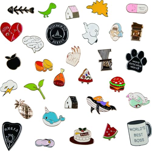• Quantity:Package includes 30 different styles of enamel brooch pins. Each pin is iron crafted with black, silver, or gold-colored nickel plating.