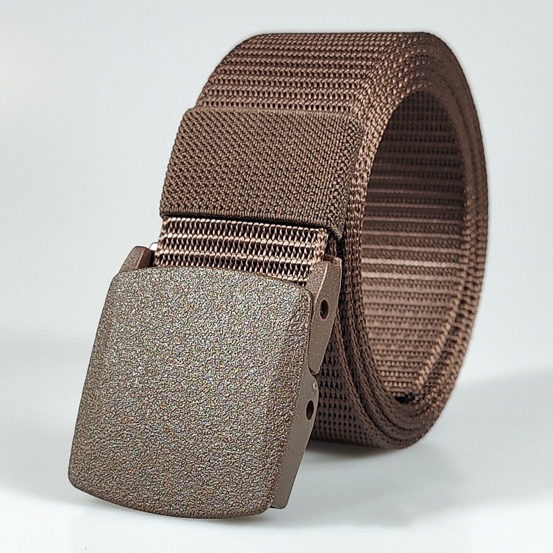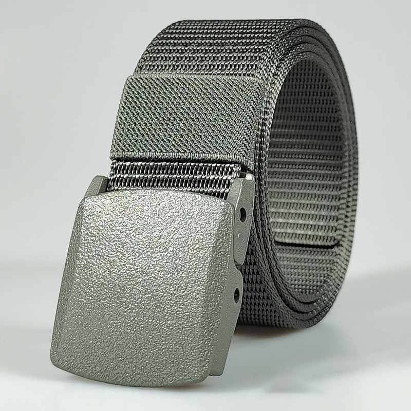 : The belt features a solid metal buckle with a textured finish, giving it a rugged and masculine look. The buckle securely locks and is easy to adjust, providing a perfect fit for any waist size. Its earthy tones, including options like blue, green, black, and more, add a touch of style that complements both tactical gear and casual outfits.