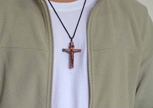 • HANDCRAFTED DESIGN: Natural wooden cross pendant meticulously carved with traditional religious symbolism and authentic details.