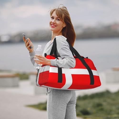 HOT ! Denmark Danish Flag Travel Duffel Bag Lightweight Waterproof Carry On Tote Bag Foldable Weekender Overnight Bags Sport Gym Bag For Women Men