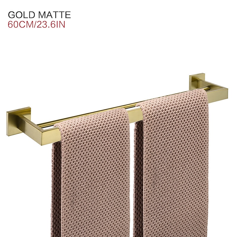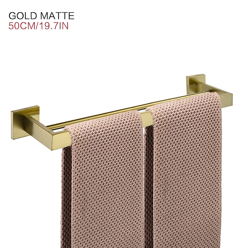 Highlights Product Selling Points: 1. Made of high-quality 304 stainless steel with formal material testing for durability. 2. Strong corrosion resistance, ensuring no rust and a lifespan of over 20 years. 3. Features a double row towel bar design for increased functionality. 4. Available in different colors and styles, with or without hooks, providing options to suit various preferences. 5. Eco-friendly, promoting health and safety for your family. 6. High hardness due to the use of 304 stainless steel material. 7. Easy installation process. 8. Available in black, gold, and silver, with different lengths and various styles to choose from. 9. Can function as both a towel bar and a bathroom shelf. 10. Made of high-quality stainless steel material, ensuring durability.